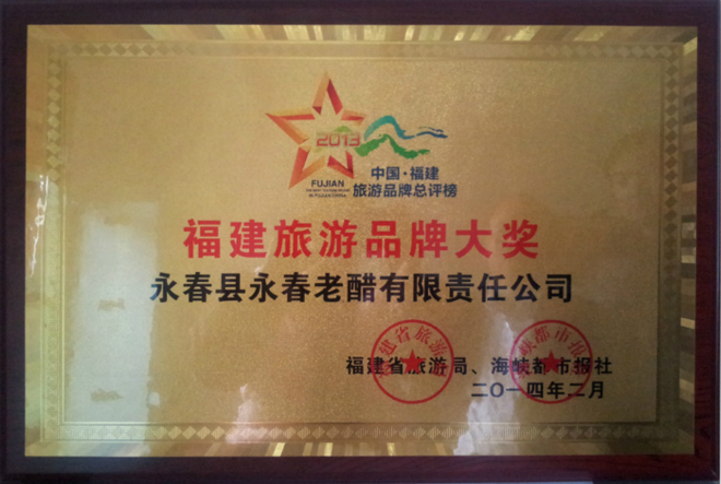 永春老醋公司榮獲“2013中國(福建)旅游總評榜“旅游品牌大獎(jiǎng)”