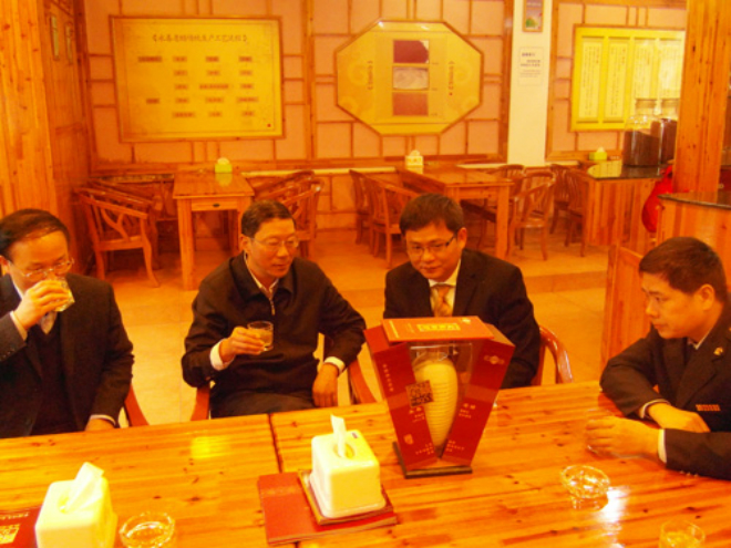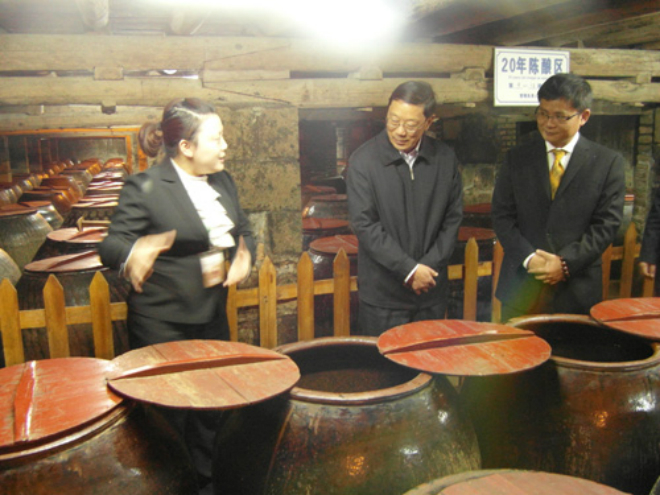 2014年3月3日下午,福建檢驗(yàn)檢疫局局長(zhǎng)、黨組書(shū)記支毅隆等一行人在縣領(lǐng)導(dǎo)的陪同下蒞臨老醋公司參觀指導(dǎo),公司領(lǐng)導(dǎo)全程陪同,熱忱接待。支局長(zhǎng)等一行領(lǐng)導(dǎo)先在醋吧了解了永春老醋的發(fā)展歷史、老醋公司的發(fā)展歷程以及獲得的諸多榮譽(yù)還有釀醋文化以及四大名醋的介紹,之后在講解員的帶領(lǐng)下參觀了老醋釀造的整個(gè)工藝流程:“從糯米蒸煮到紅曲攪拌再到紅酒發(fā)酵再到最后的灌裝成品。”每個(gè)過(guò)程都延續(xù)了傳統(tǒng)優(yōu)良工藝,秉承精益求精釀造放心食醋的釀醋精神。